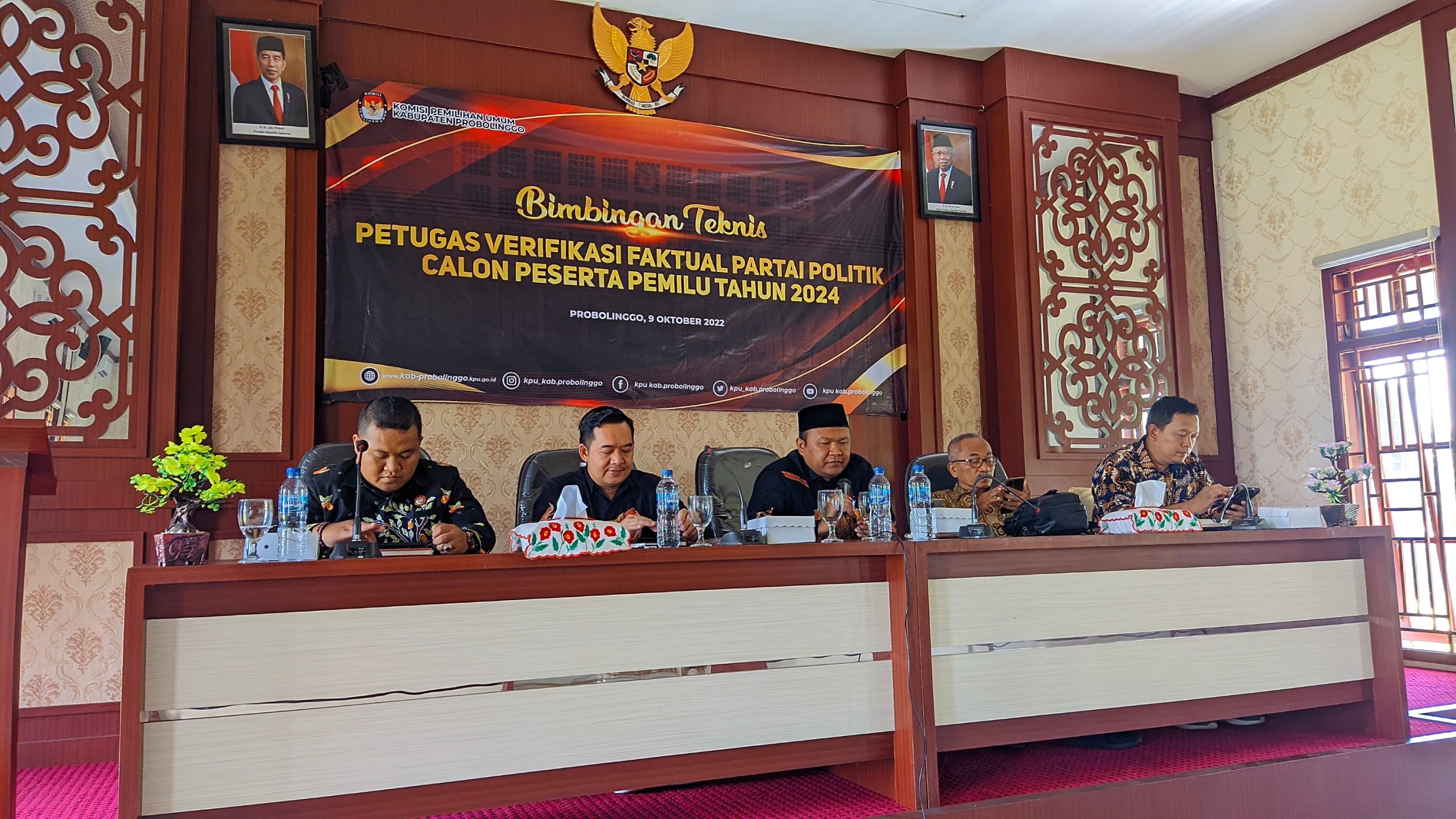 Probolinggo - KPU Kabupten Probolinggo melaksakan Giat Bimbingan Teknis Petugas Verifikasi Faktual Partai Politik Calon Peserta Pemilu Tahun 2024 pada09 okober 2022 pukul 11.00 WIB bertempat di Iyon's Cafe dihadiri oleh Kepala Dispendukcapil,Kabupaten Probolinggo, Kesbangpol Linmas Kabupatn Probolinggo dan Bawaslu Kabupaten Probolinggo. Acara dibuka oleh Ketua KPU Kabupaten Probolinggo Lukman Hakim. Lukman menjelaskan hari ini adalah pembekalan para petugas verifikasi faktual partai politik peserta pemilu tahun 2024.