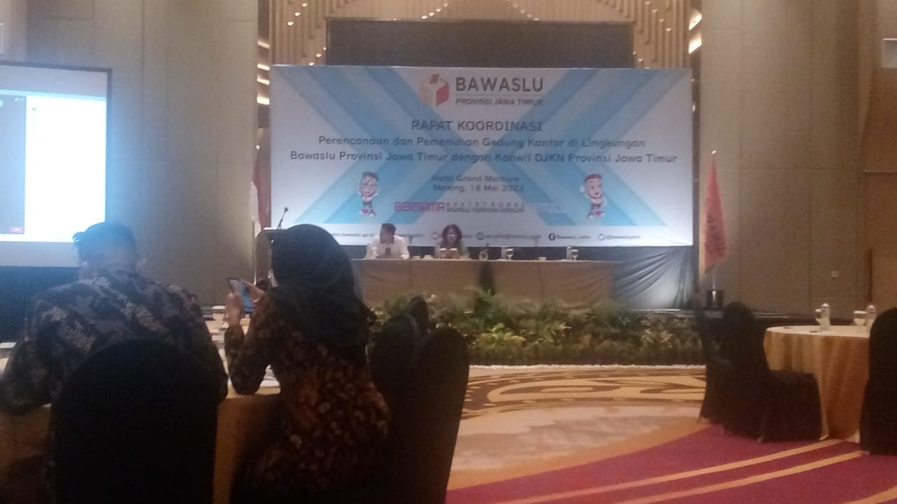 Malang – Bawaslu Probolinggo menghadiri rapat koordinasi "Perencanaan dan Pemenuhan Gedung Kantor di Lingkungan Bawaslu Provinsi Jawa timur dengan Kanwil DJKN Provinsi Jawa Timur" yang diselenggarakan oleh Bawaslu Provinsi Jawa timur di Hotel Grand Mercure yang beralamatkan Jl. Raden Panji Suroso No.7, Purwodadi, Kec. Blimbing, Kota Malang, Jawa Timur 65126. Rabu (18/05/2022).