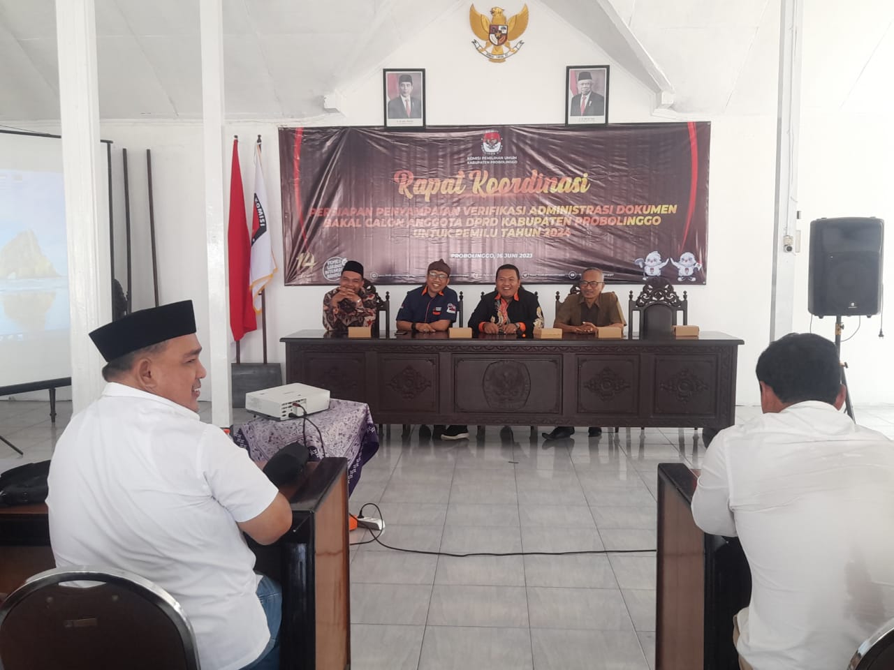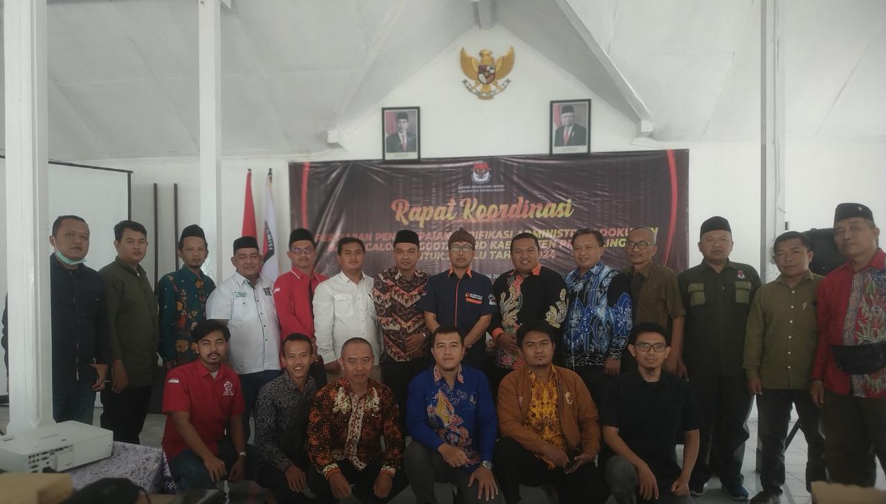 Probolinggo - Menindaklanjuti peraturan Komisi Pemilihan umum Nomor 3 Tahun 2022 tentang tahapan dan jadwal penyelenggaraan pemilihan umum tahun 2024, KPU Kabupaten Probolinggo menggelar rapat koordinasi dalam rangka pengawasan persiapan penyampaian verifikasi administrasi dokumen bakal calon anggota DPRD Kabupaten Probolinggo. Giat tersebut dilaksanakan pada hari