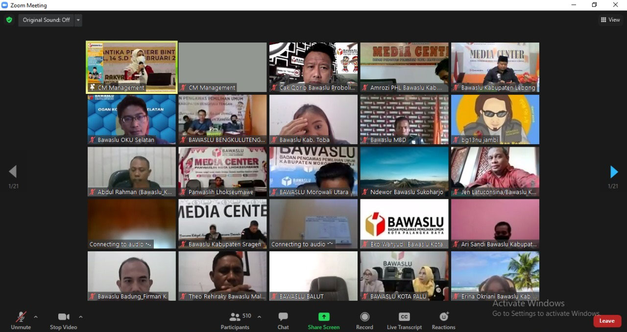 Probolinggo - Sebagai langkah dalam melaksanakan tugas, wewenang, dan kewajiban pengawas Pemilu dalam menciptakan Pemilu yang berintegritas, Ketua Bawaslu Probolinggo Fathul Qorib mengikuti Rapat Koordinasi Nasional Penyusunan Standar Tata Laksana Pengembangan Pengawasan dan Kebijakan Strategi Tahapan Pemilu 2024 yang diselenggarakan Puslitbangdiklat Bawaslu RI secara virtual melalui zoom meeting pada Senin (14/02) hingga Rabu (15/02).