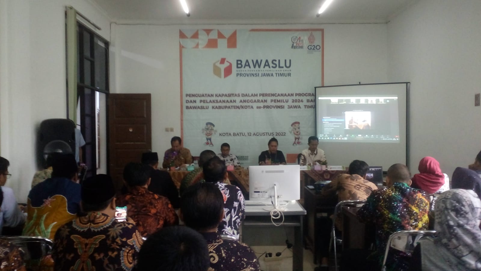 Kota Batu – Jum’at (12/08/2022) Bawaslu Provinsi Jawa Timur menyelenggarakan rapat koordinasi Pengelolaan Keuangan Dilingkungan Bawaslu dengan peserta kordinator sekretariat dan Kordiv SDMO Bawaslu kabupaten/Kota se-Jawa timur dikantor Bawaslu kota Batu .Jl. Bukit Berbunga No.13A, Sidomulyo, Kec. Batu, Kota Batu, Jawa Timur 65317