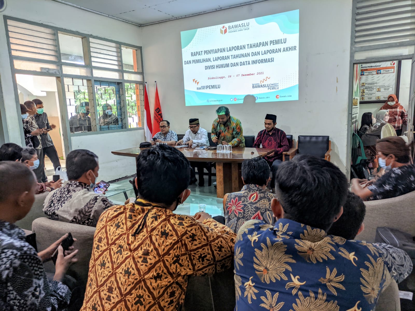 Probolinggo - Senin (6/12/2021) Bawaslu Probolinggo jadi tuan rumah pelaksanaan Rapat Penyiapan Laporan Tahapan Pemilu dan Pemilihan, Laporan Tahunan dan Laporan Akhir Divisi Hukum dan Data Informasi yang di selenggarakan oleh Bawaslu Provinsi Jawa Timur Divisi HDI yang beralamat di Jl. MT. Haryono No.466, Semampir, Kraksaan, Probolinggo. Dalam giat ini Bawaslu Provinsi Jawa Timur mengundang Bawaslu Kabupaten/Kota se Jawa Timur khususnya Kordinator Divisi Hukum dan Data Informasi beserta staf yang pelaksanaannya secara luring.