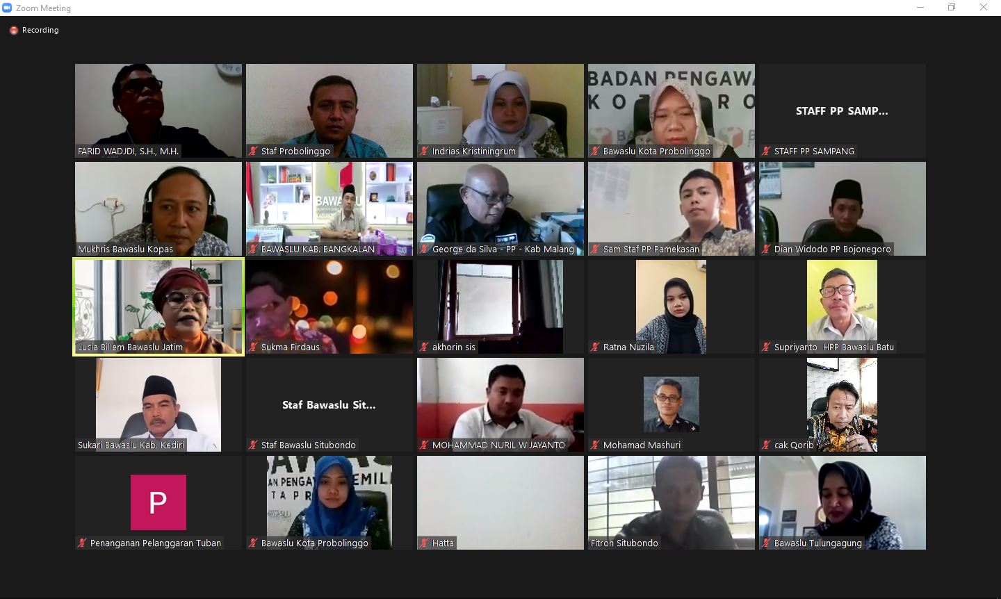 Probolinggo – Diskusi internal pendalaman Penanganan Pelanggaran Pemilu/Pemilihan seri 10 yang dilaksanakan seminggu sekali tepatnya tiap hari Kamis. Pada Kamis 28 Juli 2022 kali ini mengangkat tema “Legal Drafting/Penyusunan Putusan Administrasi Pada Pemilu” via Zoom Meeting.