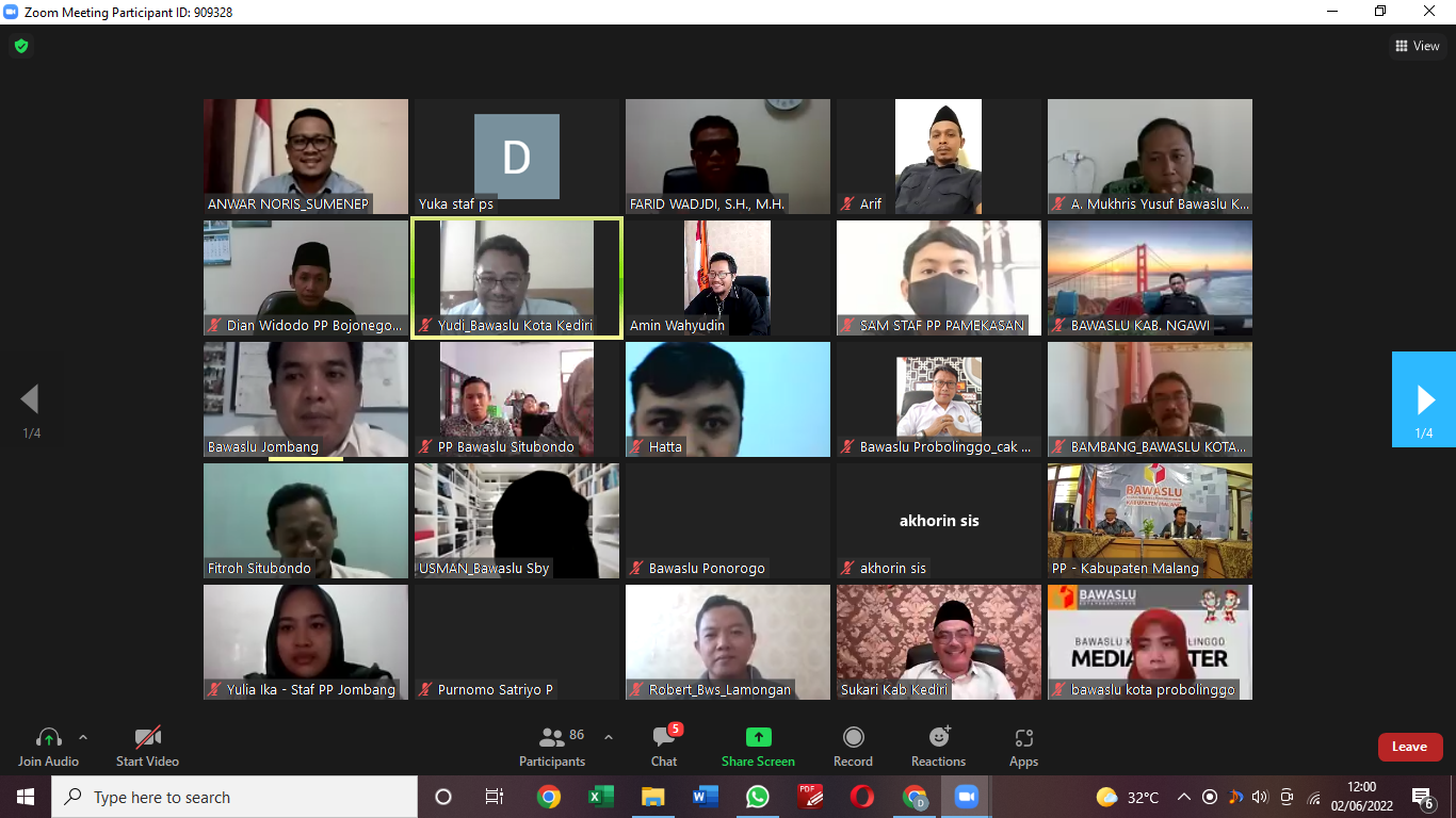 Probolinggo – Diskusi internal pendalaman Penanganan Pelanggaran Pemilu/Pemilihan seri 3 yang dilaksanakan seminggu sekali tepatnya tiap hari Kamis. Pada Kamis 02 Juni 2022 kali ini diskusi mengangkat tema “Klarifikasi Dugaan Pelanggaran” yang masih tetap melalui Zoom Meeting.