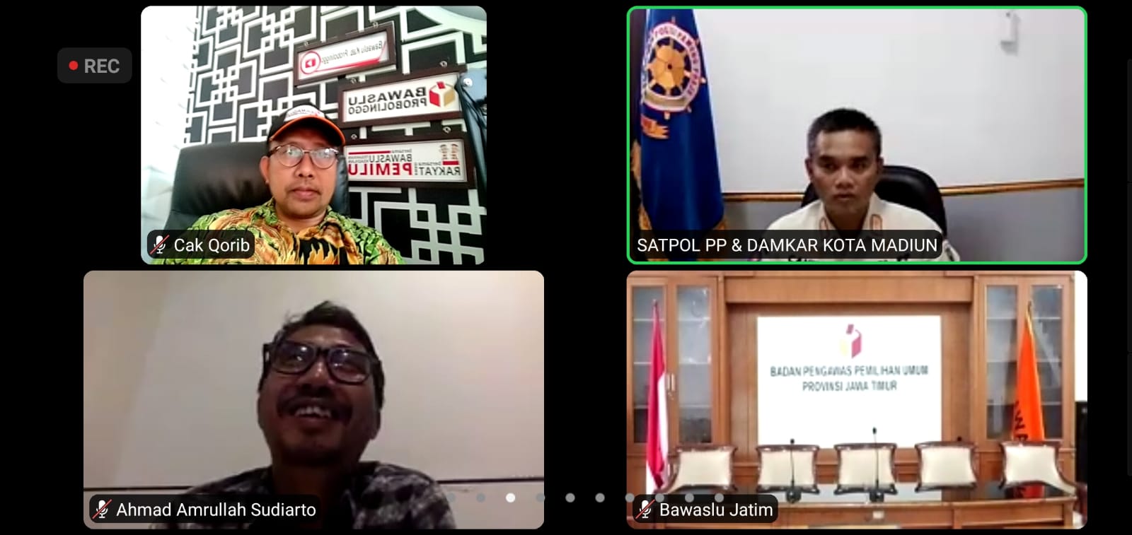 Diskusi seri kelima ini mengundang 4 orang narasumber yaitu A. Amrullah, SH., MH. (Tim Asistensi Bawaslu RI), Muh. Arbayanto, S.H., M.H. (KPU Provinsi Jawa Timur), Sunardi Nurcahyono, S.STP., M.Si. (Kepala Satpol PP Kota Madiun) dan Kaka Suminta (KIPP).