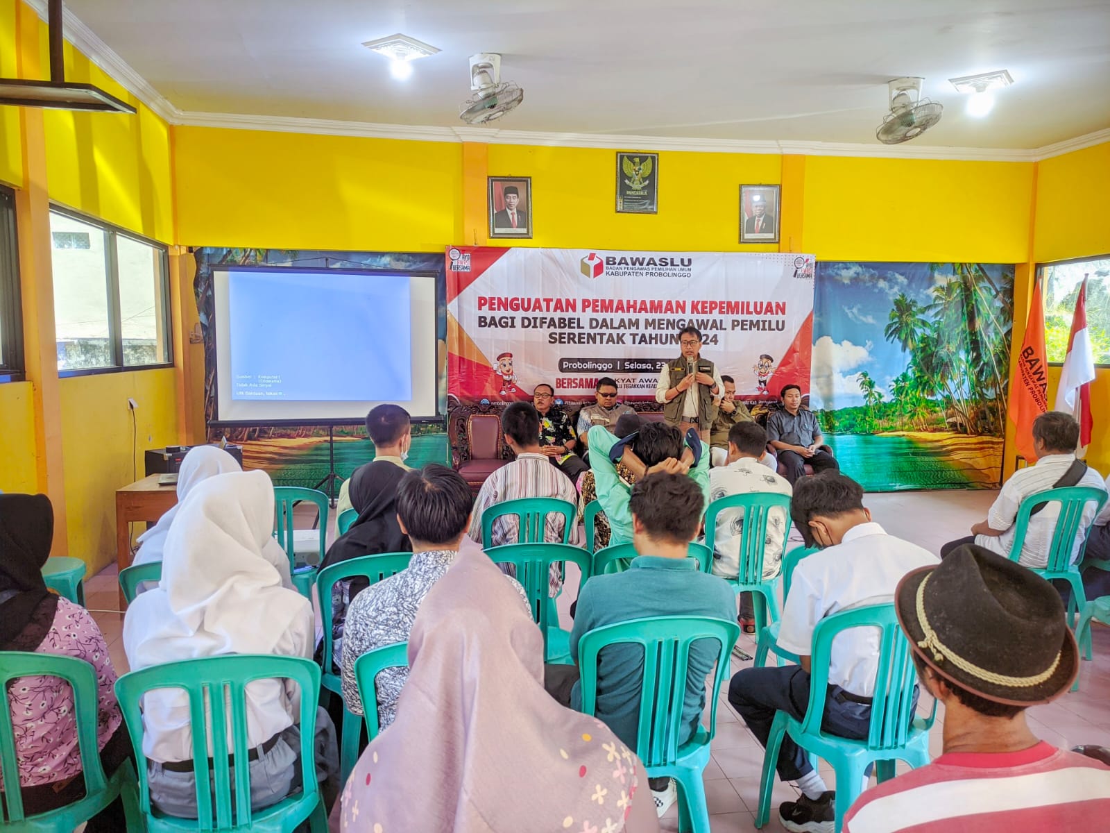 Maka dari itu pada Selasa (23/5) Bawaslu Kabupaten Probolinggo melaksanakan giat Sosialisasi bertemakan Penguatan Pemahaman Kepemiluan bagi Difabel dalam Mengawal Pemilu 2024. Bertempat di Aula Sekolah Luar Biasa (SLB) Dharma Asih Kraksaan pada pukul 09.00 hingga selesai.