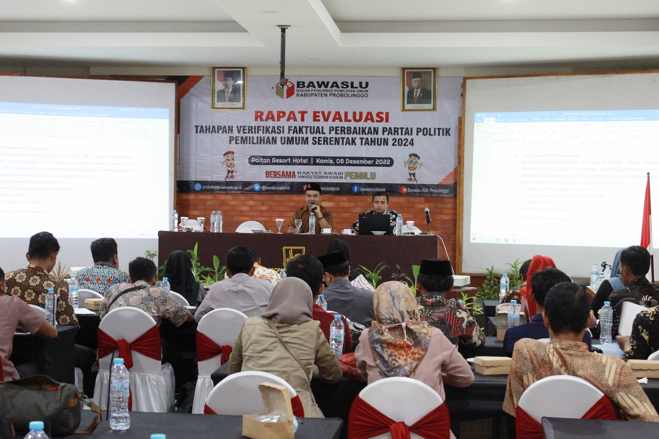 Hal ini di sampaikan Yonki bersama staf Penyelesaian Sengketa dalam kegiatan Rapat Evaluasi Verifikasi Perbaikan Anggota Parpol di Paiton Resort Hotel pada 8 Desember 2022. Dalam giat tersebut mengundang yaitu Kordiv dan Staf Penyelesaian Sengketa di 24 kecamatan se Kabupaten Probolinggo.