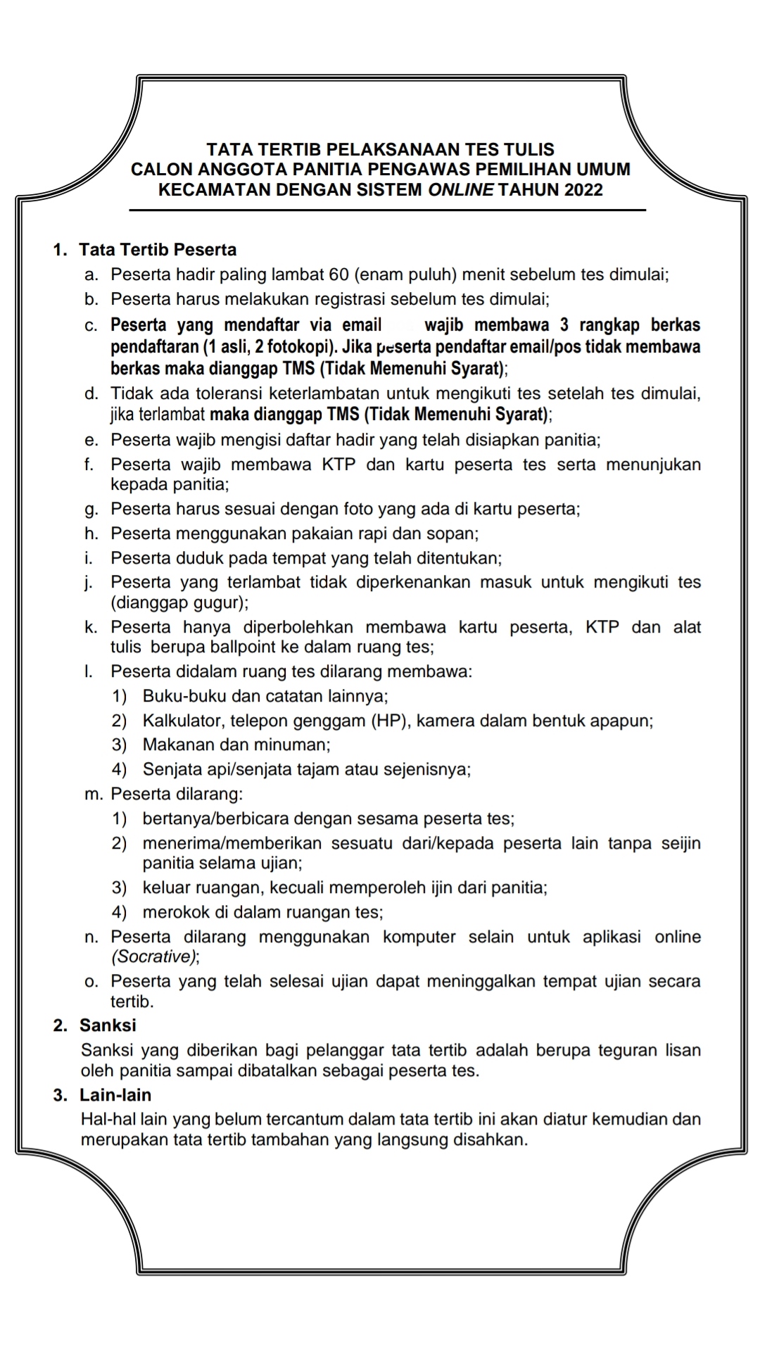 TATA TERTIB UJIAN TULIS PANWASCAM ONLINE