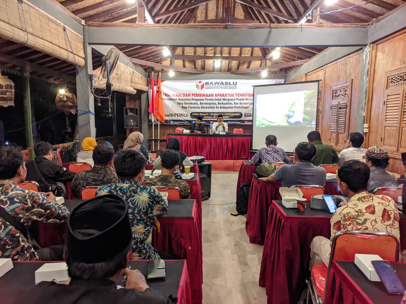 Probolinggo – Dalam rangka meningkatkan kapasitas pengawas pemilu dalam memahami tugas dan fungsi sebagai pengawas pemilu, Bawaslu Kabupaten Probolinggo menggelar rapat fasilitasi pembinaan aparatur pengawas pemilu kepada Ketua dan Panwaslu Kecamatan se Kabupaten Probolinggo pada Selasa (18/04). Bertempat di Ridho Resort Krejengan.