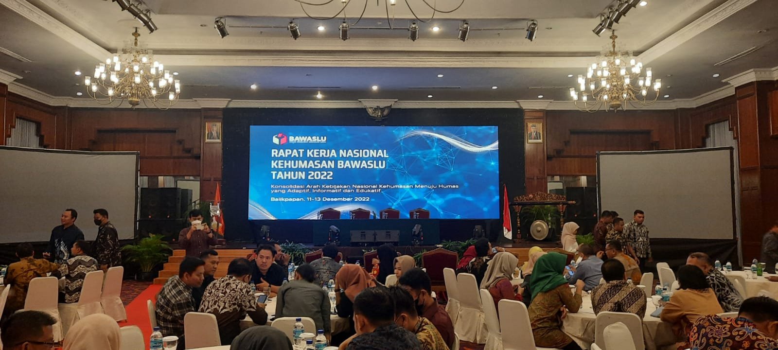 Balikpapan - Dalam rangka evaluasi dan sinergi kehumasan antar jajaran Bawaslu tingkat provinsi dan Kabupaten/Kota. Bawaslu Republik Indonesia melaksanakan Rakernas Kehumasan dengan tema Konsolidasi Arah Kebijakan Nasional Kehumasan Menuju Humas ya g Adaptif, Informatif dan Edukatif di Hotel Gran Senyiur Kota Balikpapan pada 11 sampai dengan 13 Desember 2022.