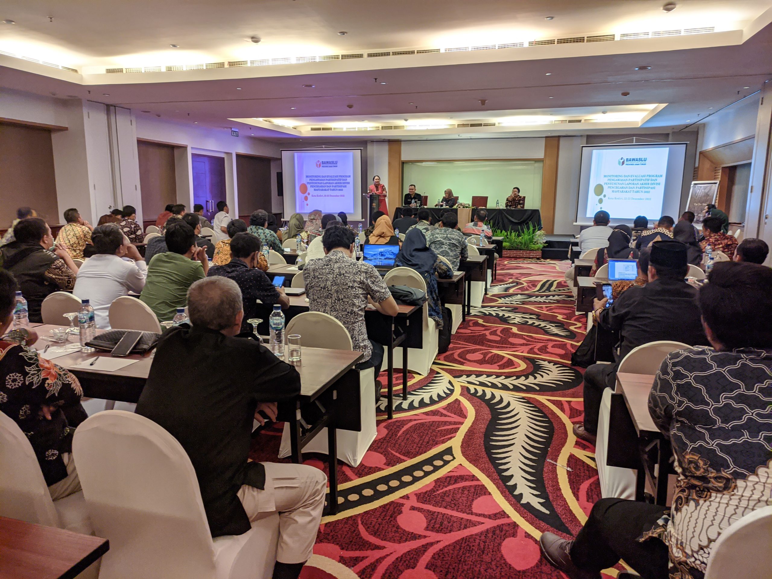 Kota Kediri - Dalam rangka pemenuhan laporan pertanggungjawaban divisi Pencegahan dan Partisipasi Masyarakat (Parmas) Tahun 2022 Bawaslu Provinsi Jawa Timur Gelar Rapat Koordinasi Monitoring & Evaluasi Program Pengawasan Partisipatif dan Penyusunan Laporan Akhir Divisi Pencegahan dan Partisipasi Masyarakat Tahun 2022 (23/12).