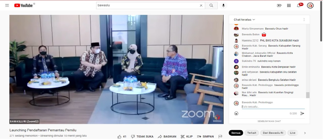 Probolinggo - Hari ini (10/06) Dalam rangka mempersiapkan tahapan Pemilu 2024 yang akan di mulai pada tanggal 14 Juni 2022 Bawaslu RI melaksanakan Peluncuran Serentak Meja Bantuan Pemantau Pemilu 2024. Kegiatan ini di ikuti oleh Ketua dan Anggota Bawaslu RI dan yang hadir lewat daring adalah Ketua dan anggota Bawaslu Provinsi, Ketua dan Anggota Bawaslu Kabupaten/Kota se Indonesia yang disiarkan langsung oleh Youtube, dan Zoom Meeting.
