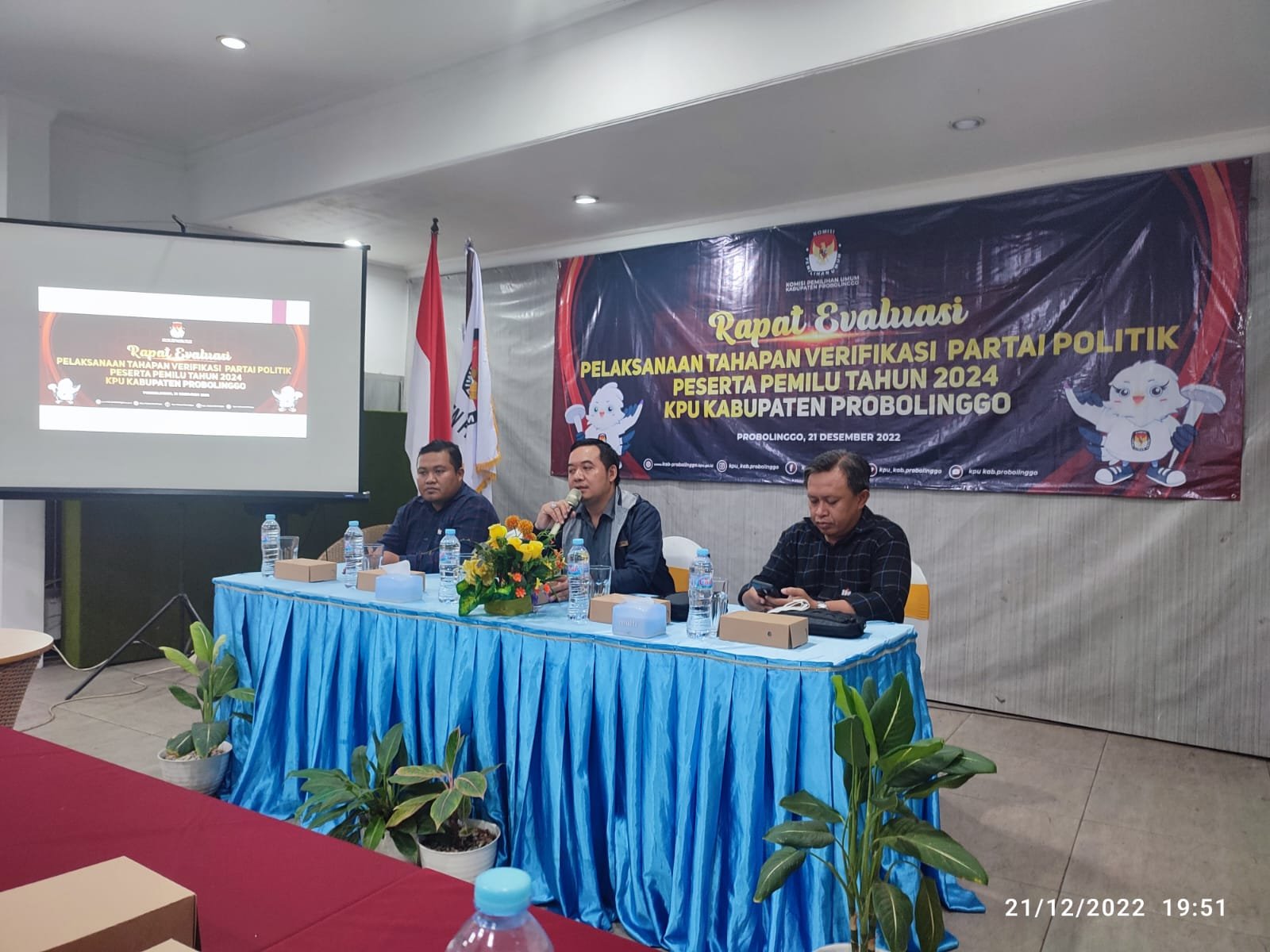 Probolinggo - Badan Pengawas Pemilihan Umum Kabupaten Probolinggo menghadiri rapat evaluasi tahapan verifikasi faktual terhadap partai politik peserta Pemilu tahun 2024 pada Rabu (21/12) di Happy Cafe and Resto. Kegiatan ini diprakarsai oleh KPU Kabupaten Probolinggo.