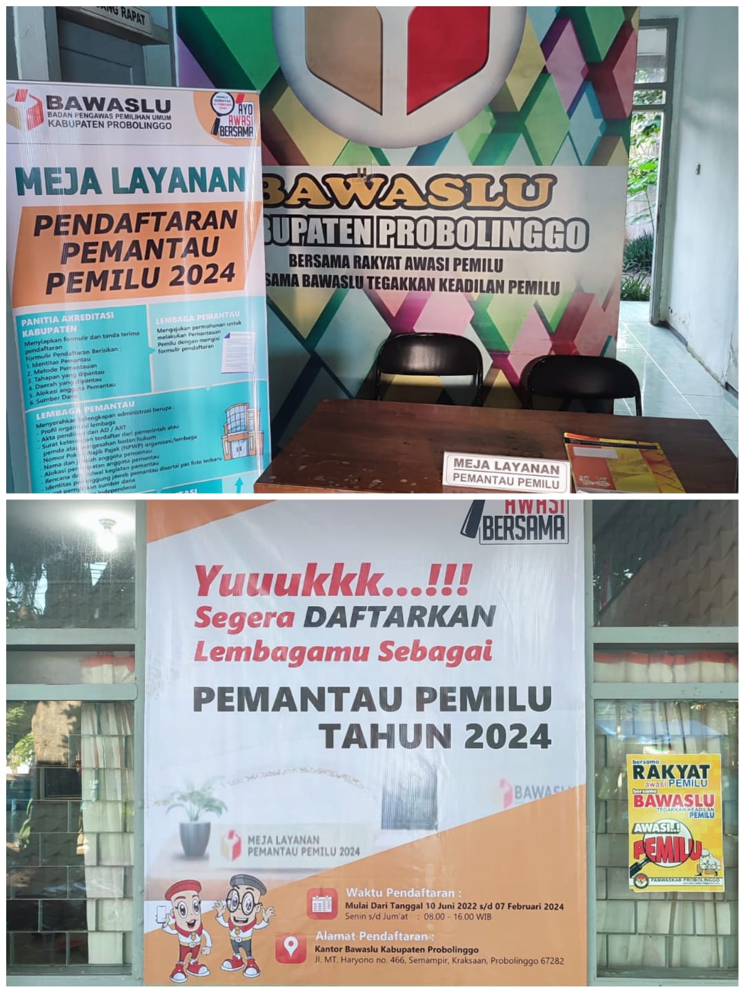 Meja Layanan Pemantau Pemilu 2024 menjadi sarana yang melayani pemantau Pemilu 2024 dalam melaksanakan tugas pemantauan Pemilu. Pendaftaran ini dimulai sejak 10 Juni 2022 hingga 7 Februari 2024. Kehadiran Pemantau Pemilu sangat dibutuhkan oleh Bawaslu, demi terwujudnya Pemilu dan Pemilihan yang berkualitas dan berintegritas. Dengan adanya pemantau Pemilu diharapkan demokrasi Indonesia akan terhindar dari politisasi sara, Hoax, fitnah dan black campaign atau kampanye hitam.Formulir Pemantau Pemilu