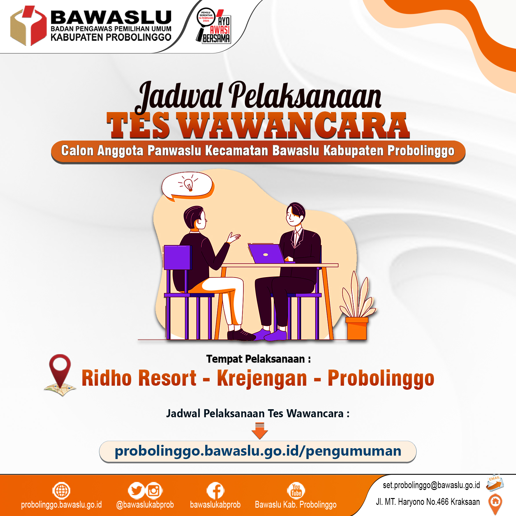 JADWAL DAN TATA TERTIB TES WAWANCARA PANWASCAM BAWASLU KABUPATEN PROBOLINGGO