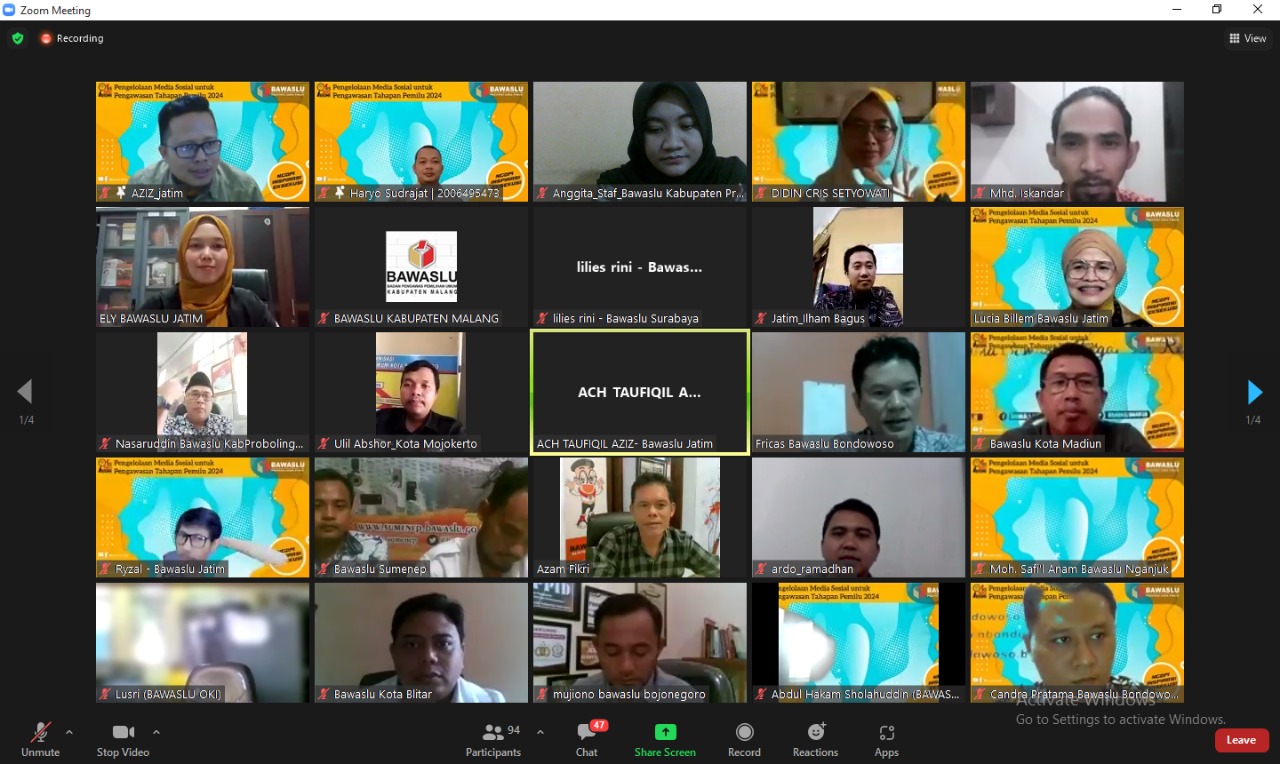 “Media sosial lembaga publik memang seyogianya digunakan untuk memberikan informasi, capaian, prestasi, hingga meningkatkan partisipasi. Untuk itu, Bawaslu Jatim selenggarakan diskusi dan kajian mendalam tentang Pengelolaan Media Sosial untuk Awasi Pemilu 2024 bersama dengan pengawas pemilu se-Jatim.”