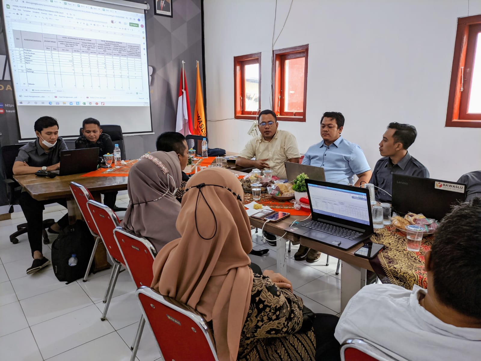 Setelah setiap Kabupaten/Kota menyerahkan data kepada Staf Bawaslu Provinsi Jawa Timur terkait dengan hal yang berkaitan pada DPB dan Hasil Pengawasan Tahun 2021 masing-masing Bawaslu Kabupaten Kota mempresentasikan progres daftar pemilih berkelanjutan beserta diskusi terkait permasalahan di masing-masing wilayah. (Humas)