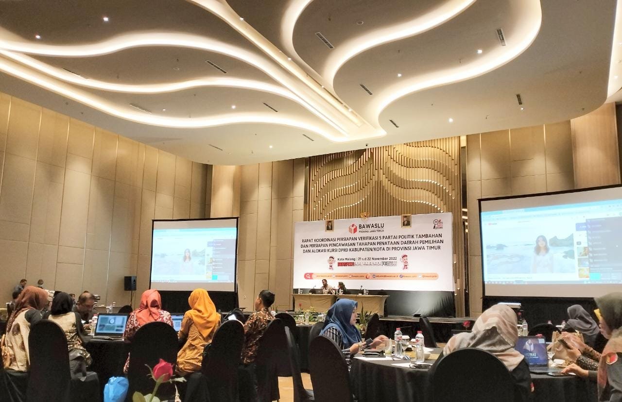 Malang – Bawaslu Probolinggo hadiri Rapat Rapat Koordinasi Persiapan Verifikasi 5 Partai Politik Tambahan dan Persiapan Pengawasan Tahapan Penataan Daerah Pemilihan dan Alokasi Kursi DPRD Kabupaten/Kota di Provinsi Jawa Timur yang di selenggarakan oleh Bawaslu Provinsi Jawa timur (21 s.d 22/11).
