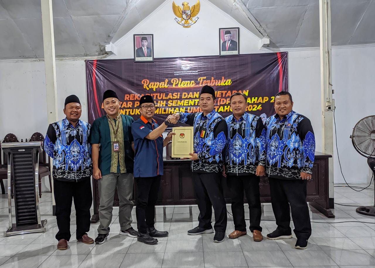 Probolinggo - Pada Sabtu, 8 april 2023 KPU kabupaten Probolinggo melaksanakan Rapat Pleno DPS tahap II yang bertempat di kantor KPU. Hadir dalam rapat tersebut Ketua dan anggota Bawaslu Kabupaten Probolinggo, kepala disdukcapil, perwakilan Polres dan Dandim 0820, partai politik, serta Ketua dan divisi Rendatin Panitia Pemilihan Kecamatan (PPK) se kabupaten Probolinggo.