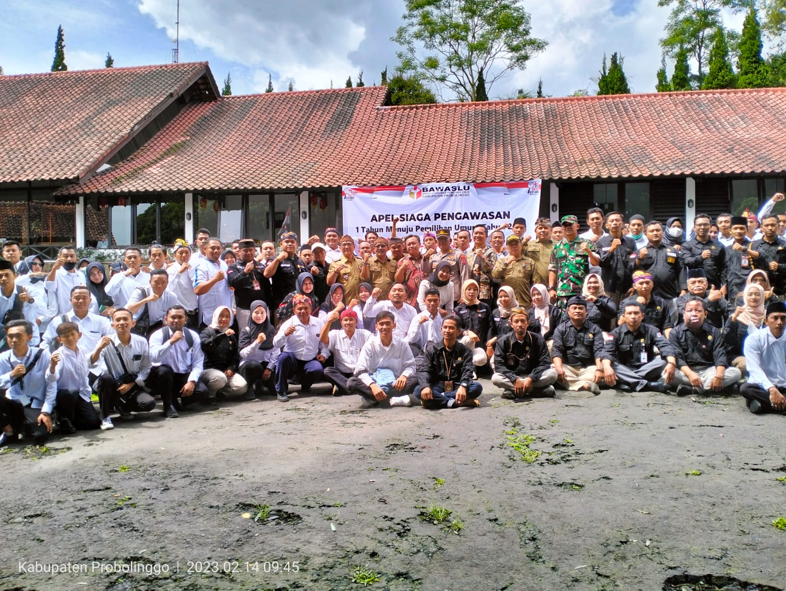 Probolinggo - Apel Siaga Pengawasan dalam rangka 1 tahun menuju Pemilihan Umum (Pemilu) serentak tahun 2024 bertempat di Grand Whiz Hotel Bromo Kecamatan Sukapura Kabupaten Probolinggo, Selasa (14/2/2023). Gelar Apel tersebut diikuti 330 Pengawas Kelurahan Desa (PKD) dan 72 Panwaslu Kecamatan se Kabupaten Probolinggo. Giat ini merupakan kegiatan serentak yang dilaksanakan di seluruh jajaran Bawaslu se-Indonesia yang menandai bahwa jajaran Pengawas Pemilu telah siap mengawasi selama setahun penuh ini.