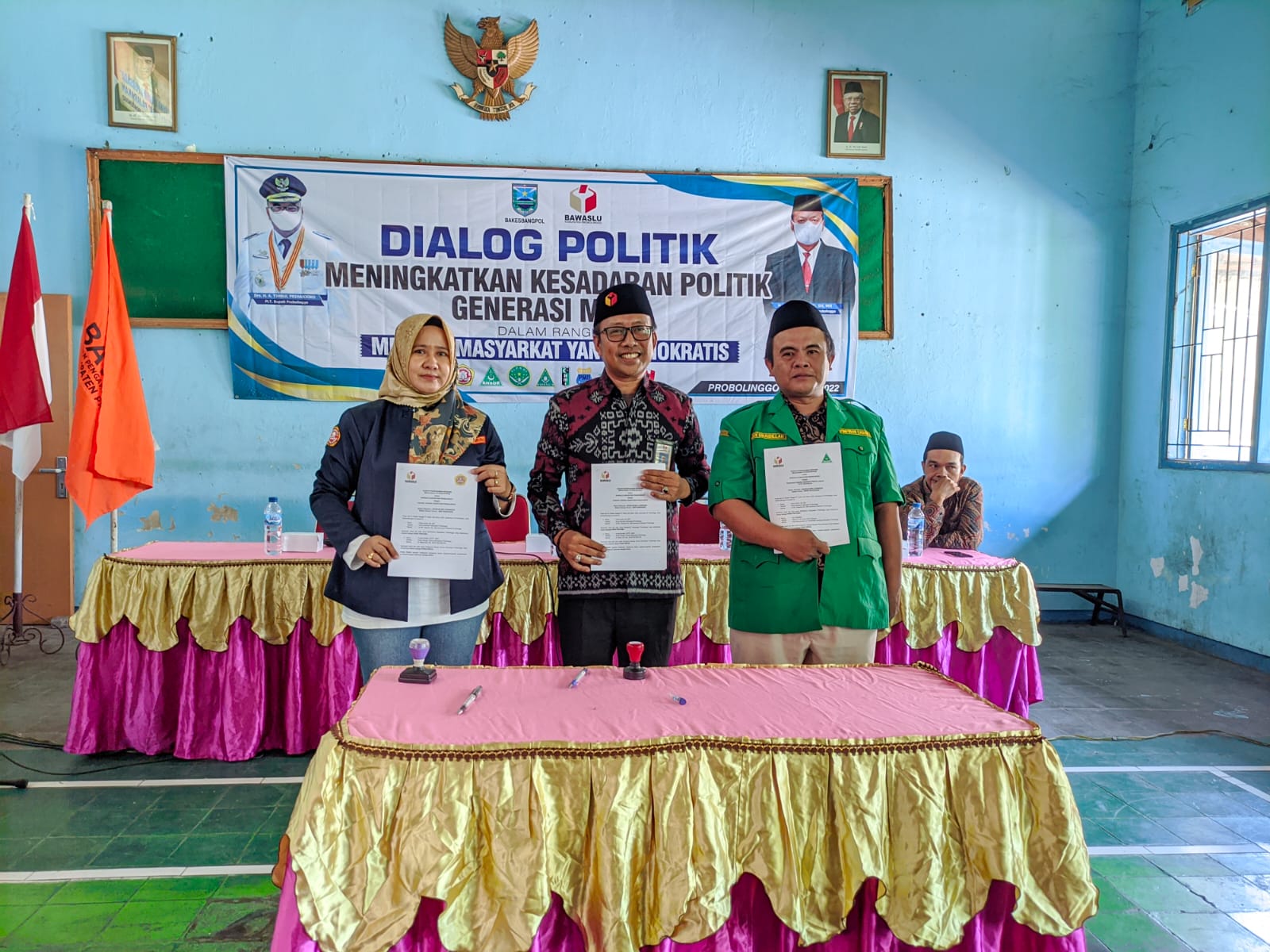 Acara penandatanganan kerjasama ini dilakukan saat pembukan acara dialog politik yang digelar oleh Bawaslu Kabupaten Probolinggo bekerjasama dengan Badan Kesantuan Bangsa dan Politik (Bakesbangpol) Kabupaten Probolinggo. (Humas).
