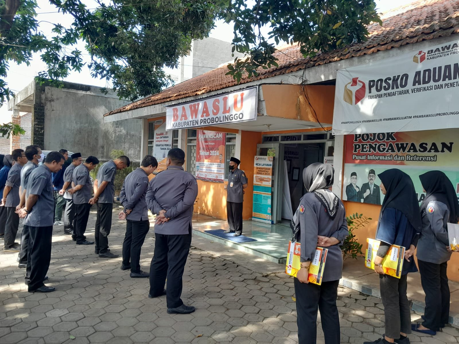 Kraksaan – Bawaslu Kabupaten Probolinggo rutin melaksanakan apel pagi di tiap Senin untuk mengawasi giat di tiap minggunya. Kegiatan apel pagi dilaksanakan pada Pukul 08.00 WIB di halaman Sekretariat Bawaslu Kabupaten Probolinggo, rangkaian apel pagi dilaksanakan dari penyiapan barisan sampai dengan ditutup dengan doa, semua peserta apel terlihat tertib dan hikmat dalam mengikuti apel pagi (31/10).
