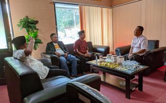Probolinggo - Pimpinan Bawaslu Kabupaten Probolinggo Fathul Qorib, Zaini Gunawan dan Rifqohul Ibad bertandang ke kantor Badan Kesbangpol Kabupaten Probolinggo pagi ini (10/06/2022). Kehadirannya, disambut langsung oleh Kepala Badan Kesbangpol Ugas Irwanto diruang kerjanya.