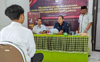 Kraksaan - Koordinator Divisi SDMO dan Diklat Bawaslu Probolinggo Zaini Gunawan, Selasa (13/12) mengawasi langsung proses tes wawancara calon anggota Panitia Pemilihan Kecamatan (PPK) se-Ka