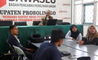 Kraksaan - Bertempat di ruang Rapat Kantor, Ketua Bawaslu Kabupaten Probolinggo Fathul Qorib memaparkan tugas Bawaslu Kabupaten Probolinggo dihadapan Mahasiswa dalam peny
