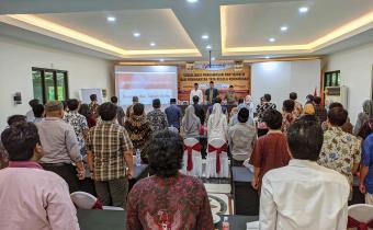 Surabaya - Giat sosialisasi regulasi tahapan penyelenggaraan pemilu 2024 KPU Provinsi & KPU kab/kota se-Jatim digelar dengan diawali oleh penandatanganan MoU antara KPU dan